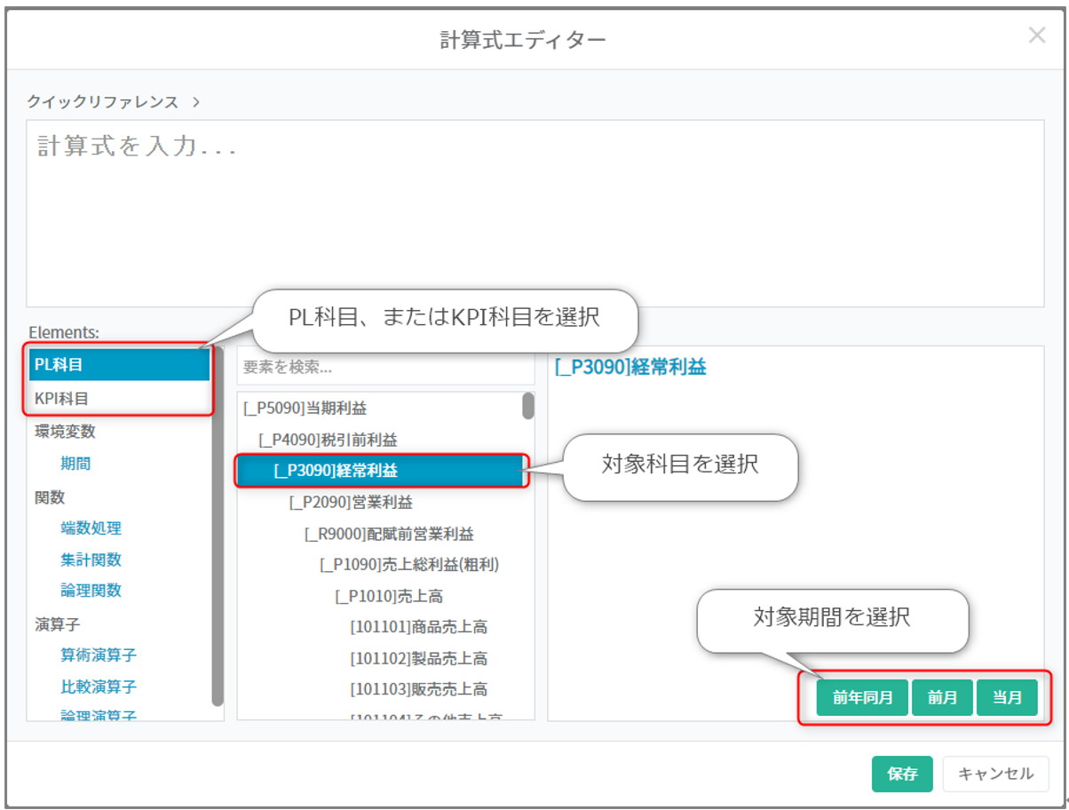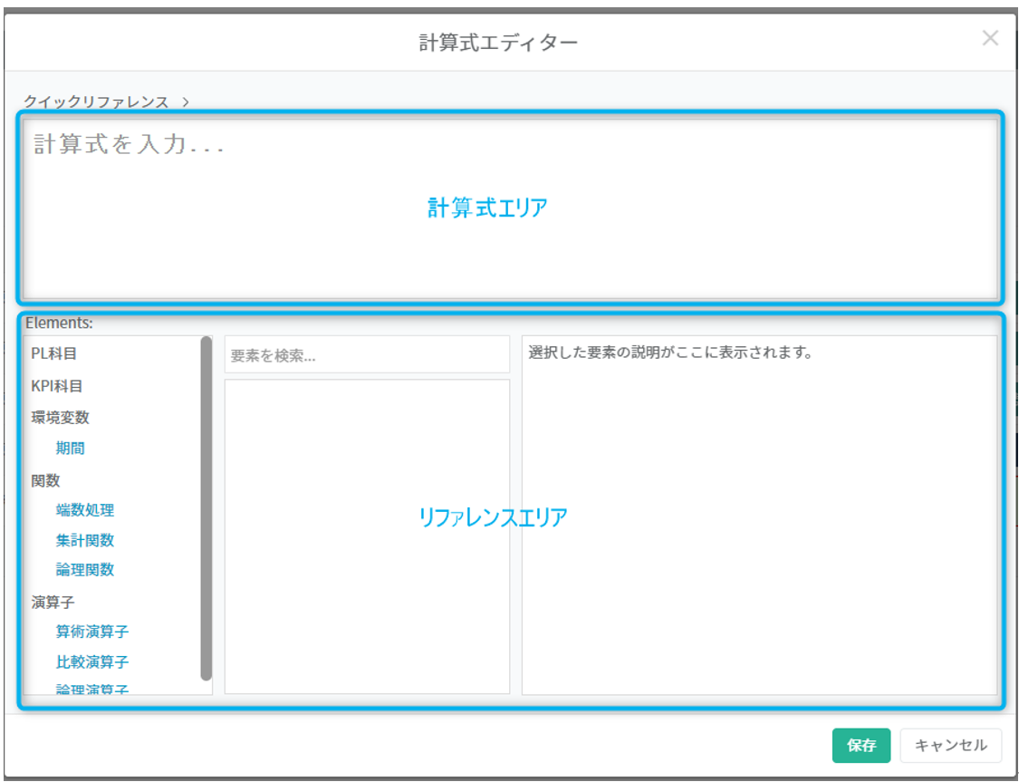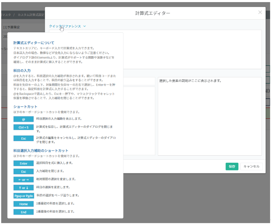 計算式の編集をキャンセルし、計算式エディターのダイアログを閉じます。 |