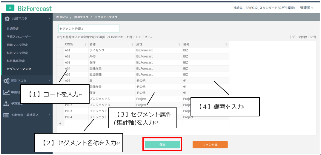 共通マスタ >> セグメントマスタ