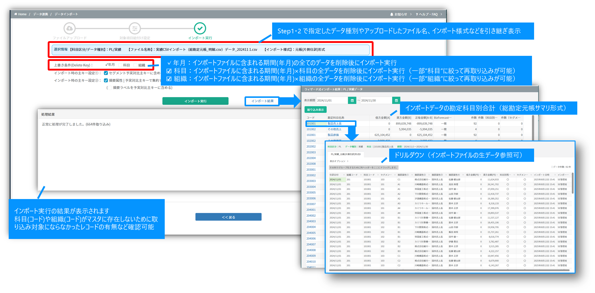 | 2 | 借方組織コード | 〇 | 組織変換設定: BizForecast上の組織とインポートファイルの組織が異なる場合、 コードや名称で変換設定が可能 |