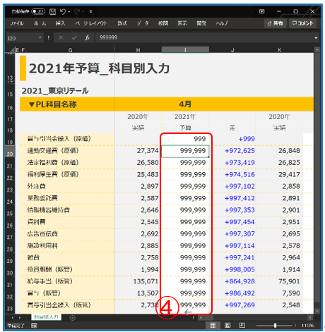 ④ Excelで変更したセルが収集パッケージに反映されます。