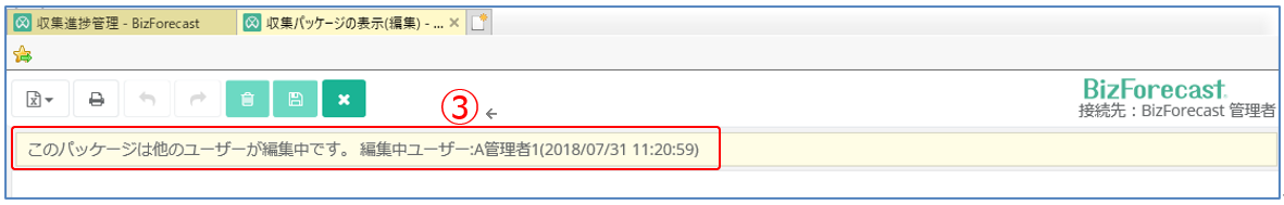【パッケージの表示(編集)画面-編集中メッセージ】