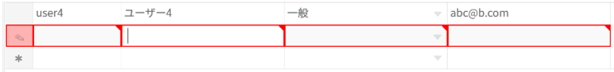 既存ユーザーを削除したい場合、ロック列のチェックボックスをチェック状態にすることでアカウント無効化(論理削除)が可能です。(物理削除はできません)