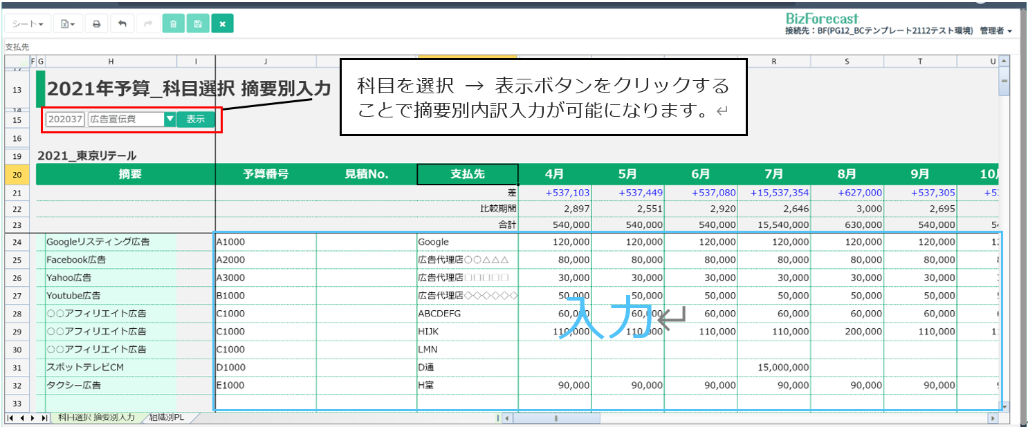 1.5. 明細|セグメント×摘要別入力|PL予算