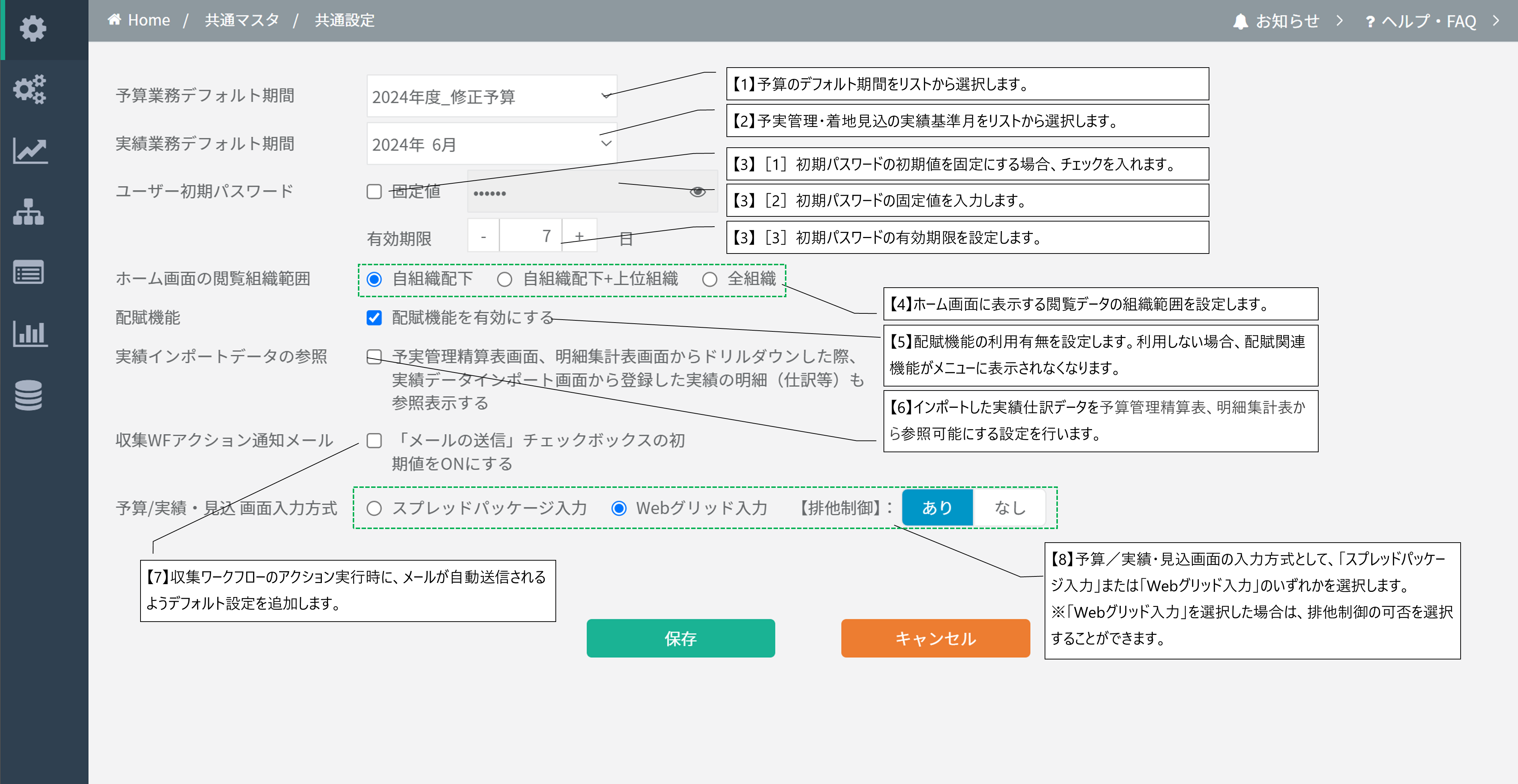 ここで設定した期間を、画面を開いた際の予算策定のデフォルト期間とします。