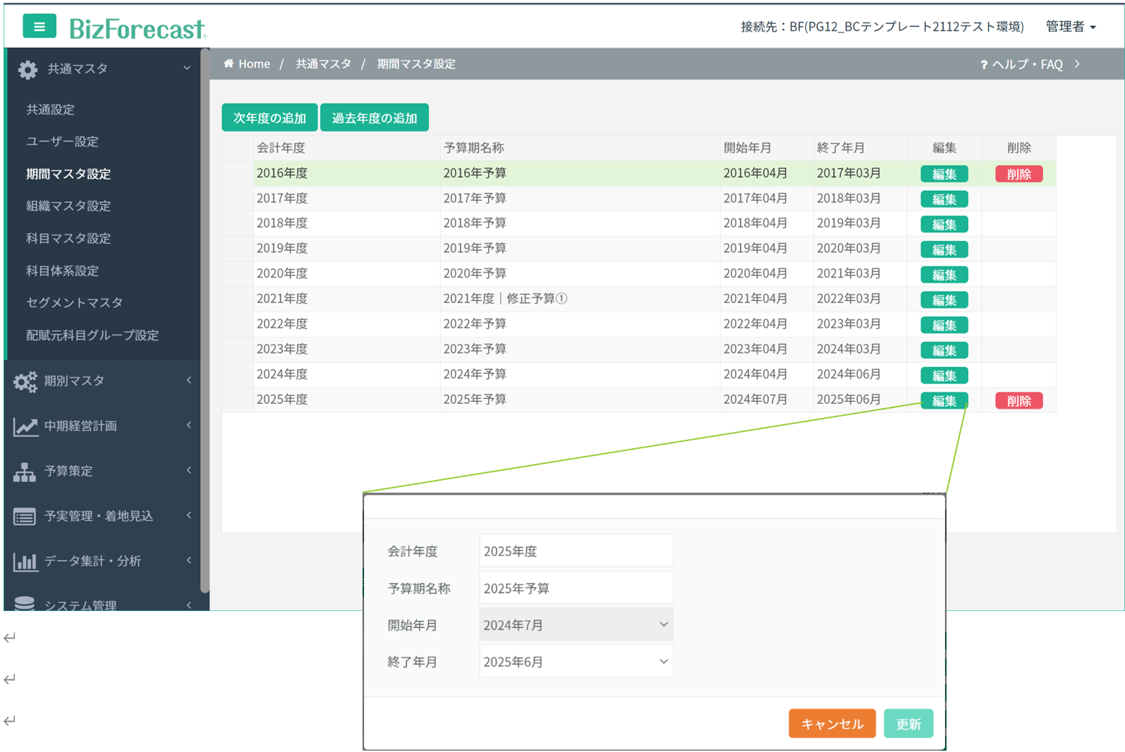 共通マスタ >> 期間マスタ設定摘要ラベル | (n)年4月 | (n)年5月 | (n)年6月 | (n)年7月 | (n)年8月 | (n)年9月 | (n)年10月 | (n)年11月 | (n)年12月 | (n+1)年1月 | (n+1)年2月 | (n+1)年3月 |
