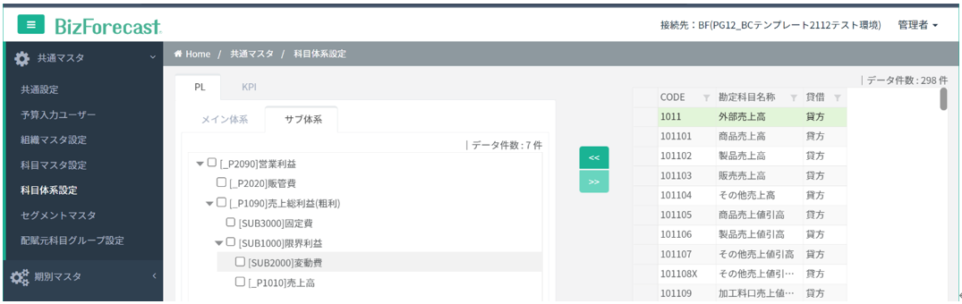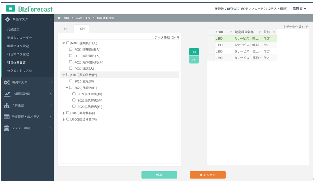 KPI科目体系については、頂点になる科目を複数登録し、それぞれ独立した計算体系(足し上げ構造の勘定科目体系ツリー)として定義することが可能になっています。
