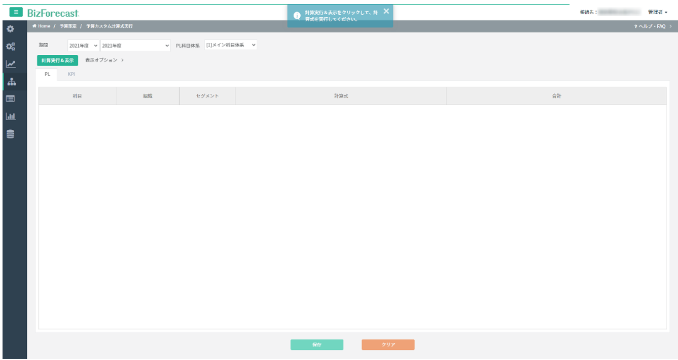 計算実行&表示ボタンをクリックすると、指定された期間・科目体系を使用して、計算式が実行され、計算結果が画面にプレビュー表示されます。