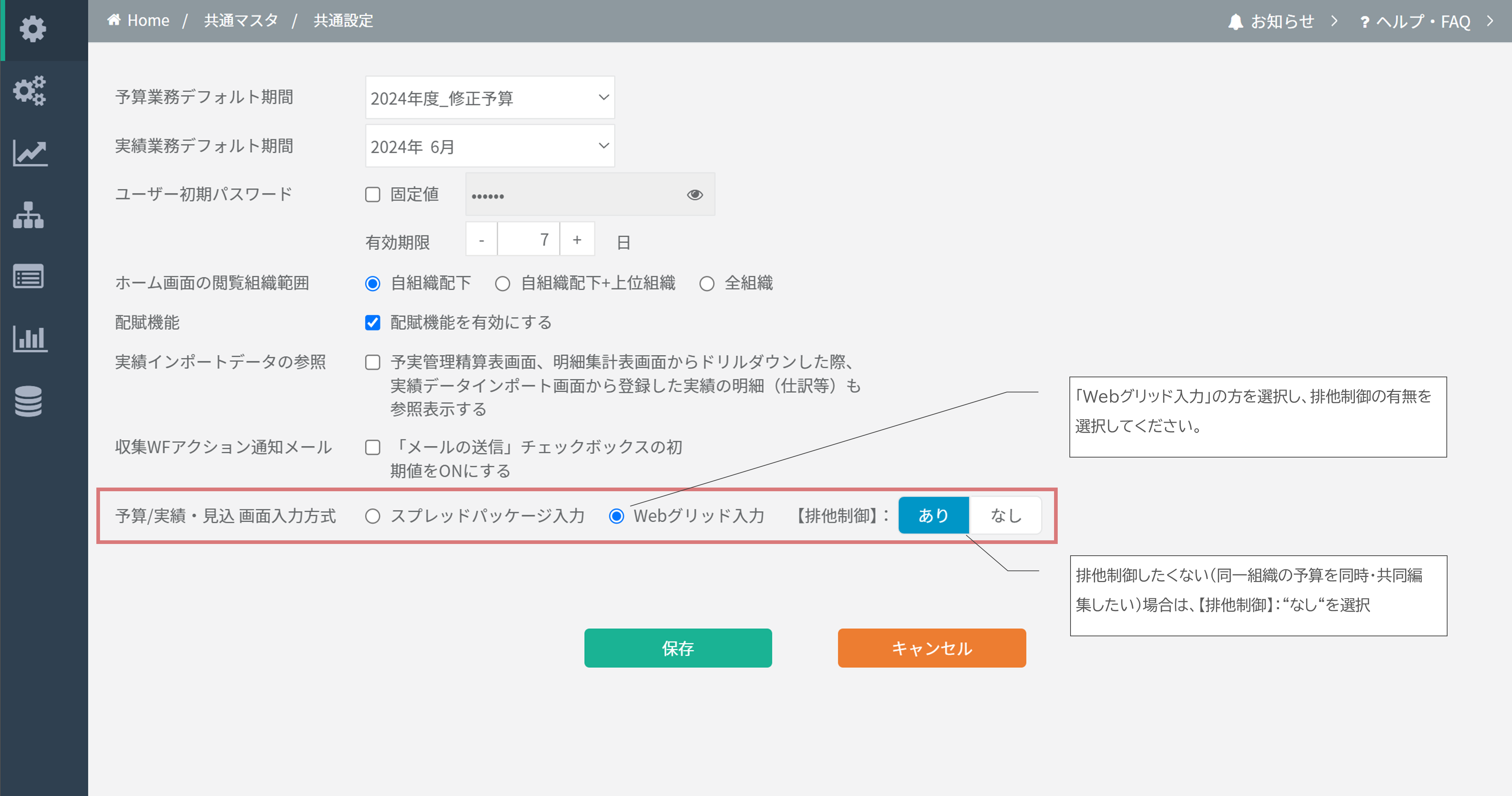 以下、スプレッド入力からWebグリッド入力に変更いただくための手順をご説明します。