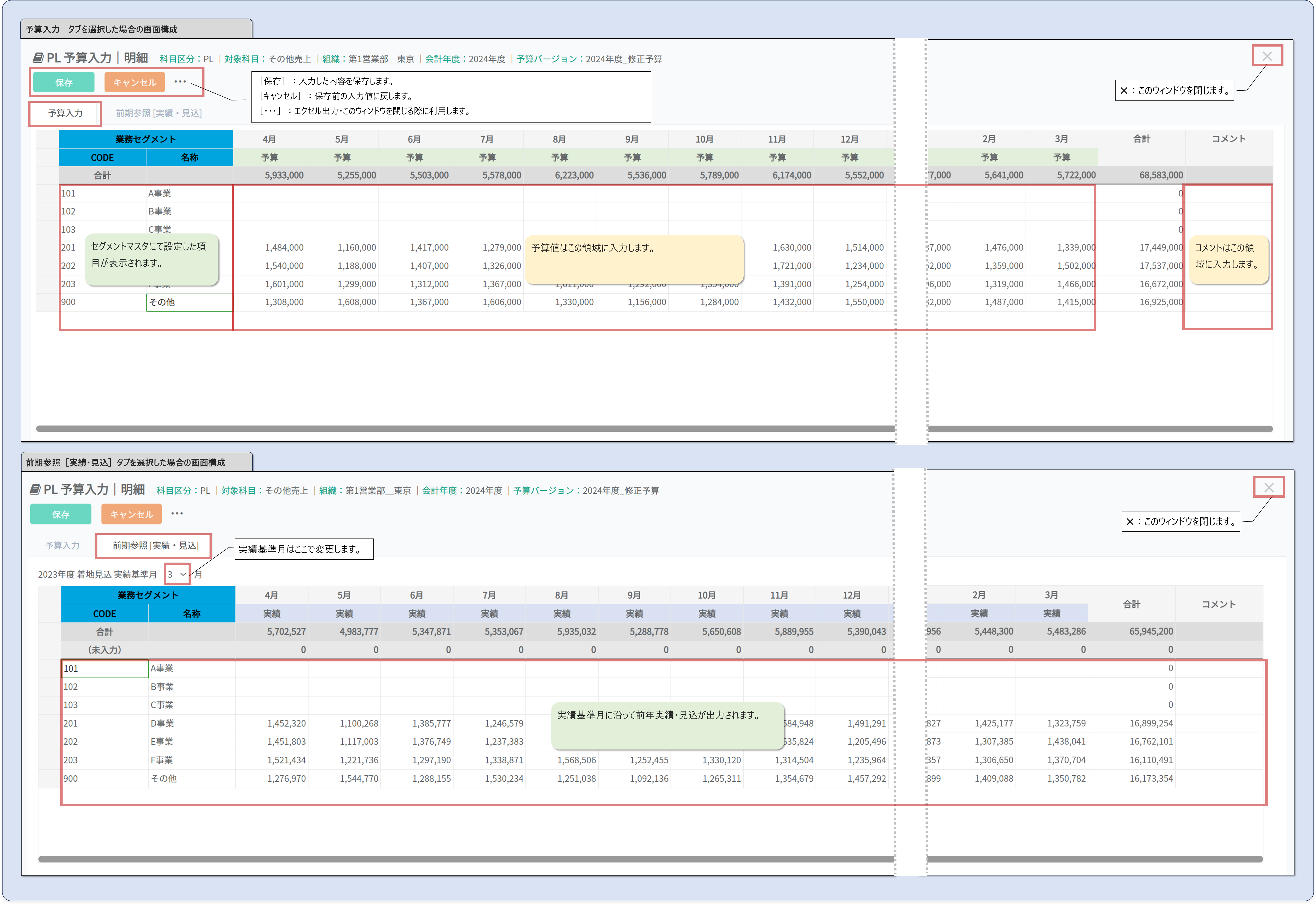 ◆明細予算入力[1] 明細|セグメント×摘要別入力