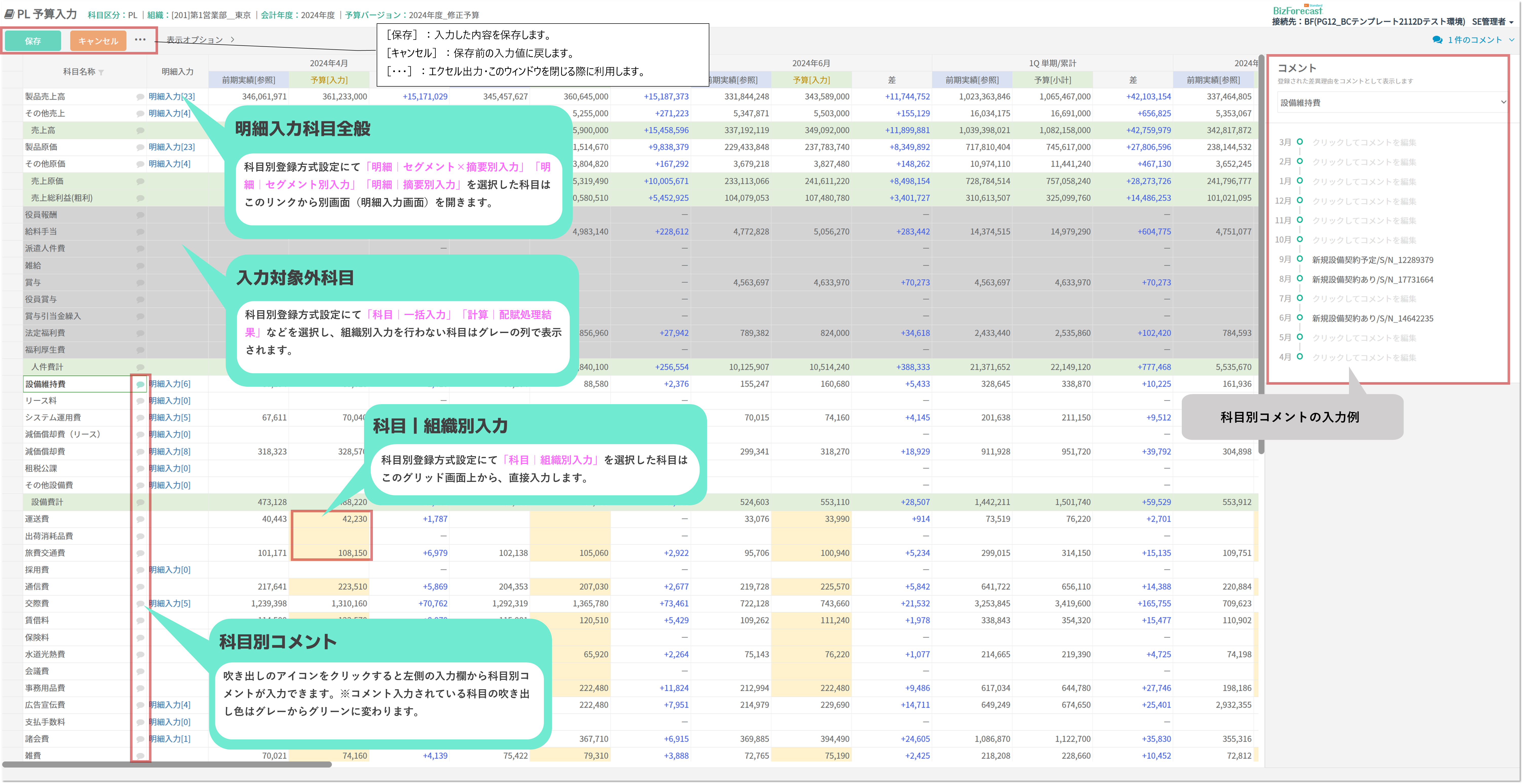 (月次)実績と当初予算ないし見込数値を比較し、事業活動の成果や様々な外部環境変化の影響を総合的に判断した上で、通期見込の数値を策定し、月ごとにデータ登録することが可能です。 予実管理・着地見込 >> 実績・見込入力 見込入力画面は、予算入力画面と同様、ワークフローステータスの変更や、各種入力パッケージの選択→表示・編集の他、根拠データの登録・参照など多くの作業を実施する機能画面です。 パッケージ選択・ワークフロー画面の詳細、パッケージ入力画面の詳細については下記記事を参照ください。 【参照】 ...